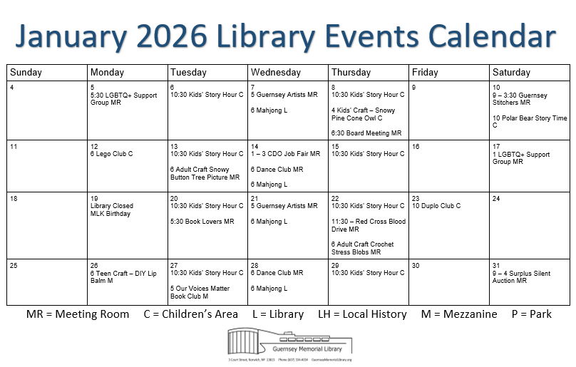 Databases, ebook and audiobook resources, and streaming video and music sources: HoursMon – Thurs 9 – 8Fri 9 – 6Sat 9 – 4Sun 1 – 4(Closed on Sundays in the summer) Guernsey Memorial Library3 Court StreetNorwich, NY 13815607-334-4034guernsey@4cls.orgRegister online for a library card here! Total Page Visits: 83148 - Today Page Visits: 5
